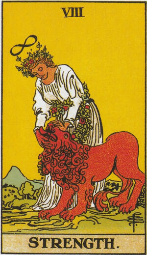 ผู้หญิงคนหนึ่งลูบสิงโตซึ่งเป็นสัญลักษณ์ของสันดานดิบและความปรารถนาซึ่งเชื่อมผ่านความแข็งแกร่งและยืดหยุ่นอยู่ภายใน เสื้อผ้าของเธอแสดงถึงความบริสุทธิ์ของจิตวิญญาณและเครื่องหมายอินฟินิตี้บนศีรษะของเธอแสดงถึงสติปัญญาและศักยภาพ