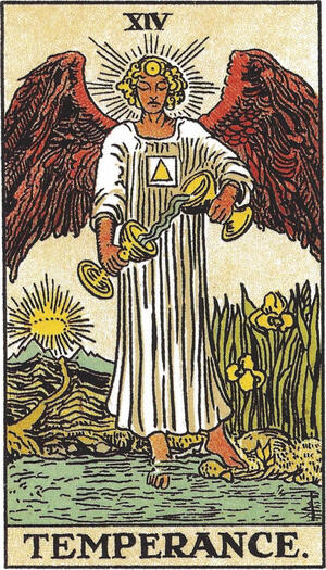 เป็นเทวดาที่ไม่ได้กำหนดเพศ เป็นทูตสวรรค์ยืนโดยเท้าข้างหนึ่งยืนบนก้อนหินแสดงให้เห็นถึงความจำเป็นที่จะต้องอยู่บนพื้นดิน กำลังทำการทดลองผสมน้ำจากถ้วยสองถ้วย ถ้วยนึงเย็น ถ้วยนึงร้อน เข้าด้วยกัน ไผ่นี้จึงเป็นตัวแทนของความสมดุลและความสามัคคี